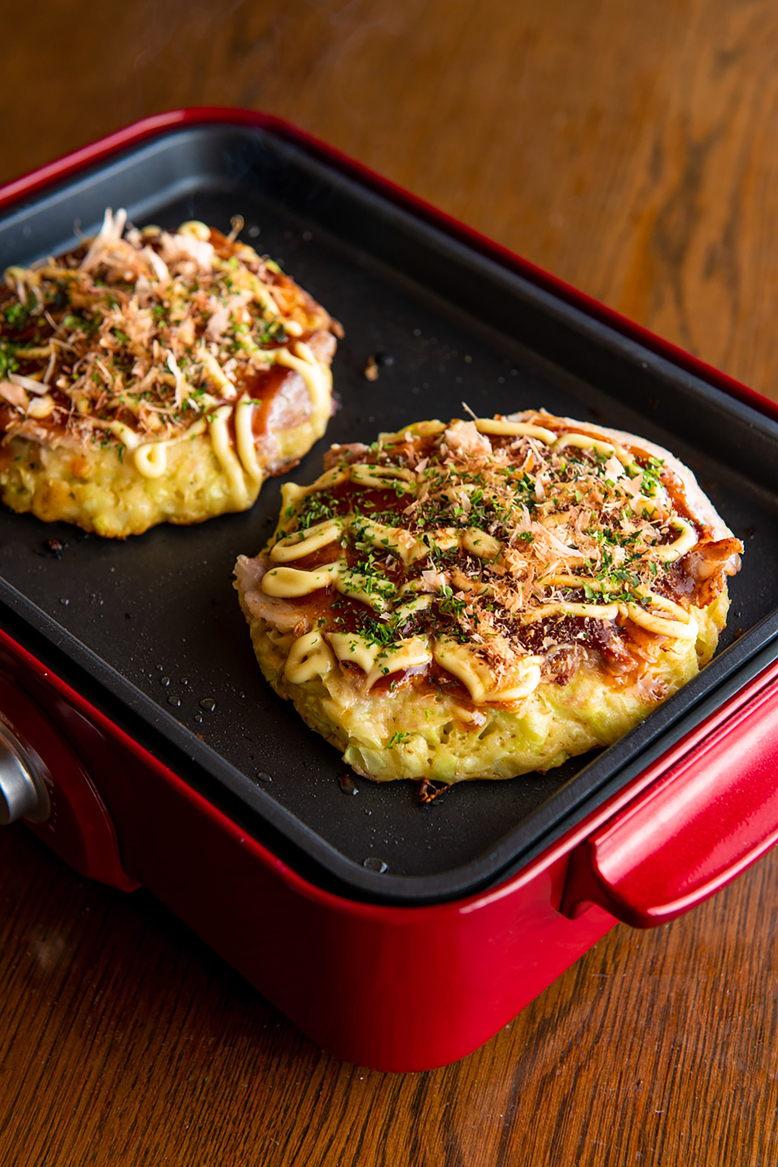 ①平面プレート 焼き物、炒め物をオールマイティにこなす平面プレート。お好み焼きや鉄板焼き、パンケーキや目玉焼き、焼きそば、チャーハン、餃子、パエリヤなど使い方自在。 ②たこ焼きプレート みんなで楽しいたこ焼きパーティー。コンパクトサイズでも一度に24個ずつたくさん作れます(24穴タイプ)。たこ焼き以外にもアヒージョや一口カステラ、一口ドーナツなどアイデア次第で楽しくアレンジ。 ③セラミックコート鍋 一番人気!ホットプレートがお鍋に大変身! おでんやいろんな鍋料理、たっぷりのリゾットやパエリアなど和洋を問わず、充実のレパートリーをご提供。焦げ付きにくくお手入れ簡単なセラミック加工。 ④グリルプレート お肉や野菜のグリルや焼肉、焼き魚がおいしく仕上がります! 余分な脂を落とし、しっかり焼き目をつけて、こんがりおいしくヘルシーに! 焦げ付きにくくお手入れ簡単なフッ素コーティング。 ⑤マルチプレート パンケーキや大判焼き、目玉焼きやライスバーガー、アヒージョなど、均一なサイズで一度に6つの調理ができます。アイデア次第でレパートリーが広がります。