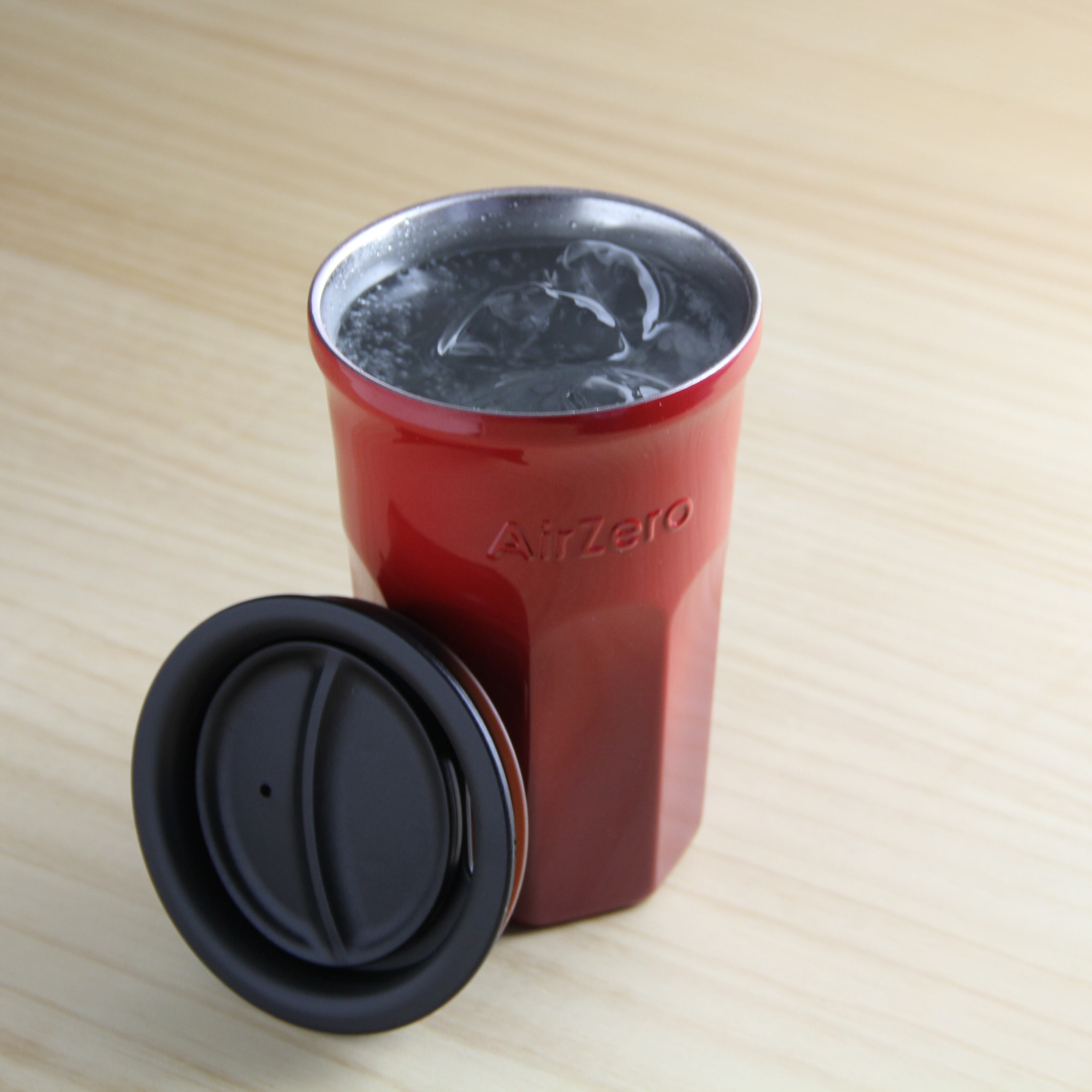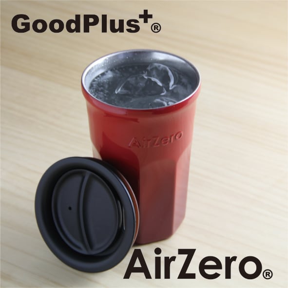 ●サイズ:約8.8×8.8×13.3cm 、●飲み口内径:約8.3cm(蓋なし)、●重量:約190g 、●実用量:約450ml(蓋未使用時)、約400ml(蓋使用時) 、●保温効力:78度以上(1時間)、 ●保冷効力:7度以下(1時間) 、●材質:本体/ステンレス鋼、 ふた・せん/ポリプロピレン(耐熱120℃)、 パッキン/シリコンゴム(耐熱120℃) 、●原産国:中国、※「AirZero(エアゼロ)」は、株式会社グッドフェイスが企画・監修し、日本基準の厳重な品質管理の下、 中国工場で製造しています。