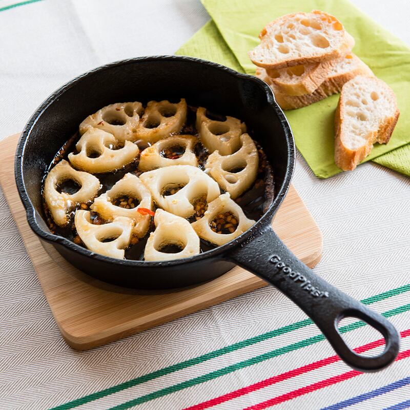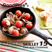グッドプラス (GoodPlus+) スキレット15(木製台付) 15cm 4個セット【お徳用】【熱々を食卓へ】【アウトドア】【丈夫】【鉄鋳物フライパン】【IHオール熱源対応】
